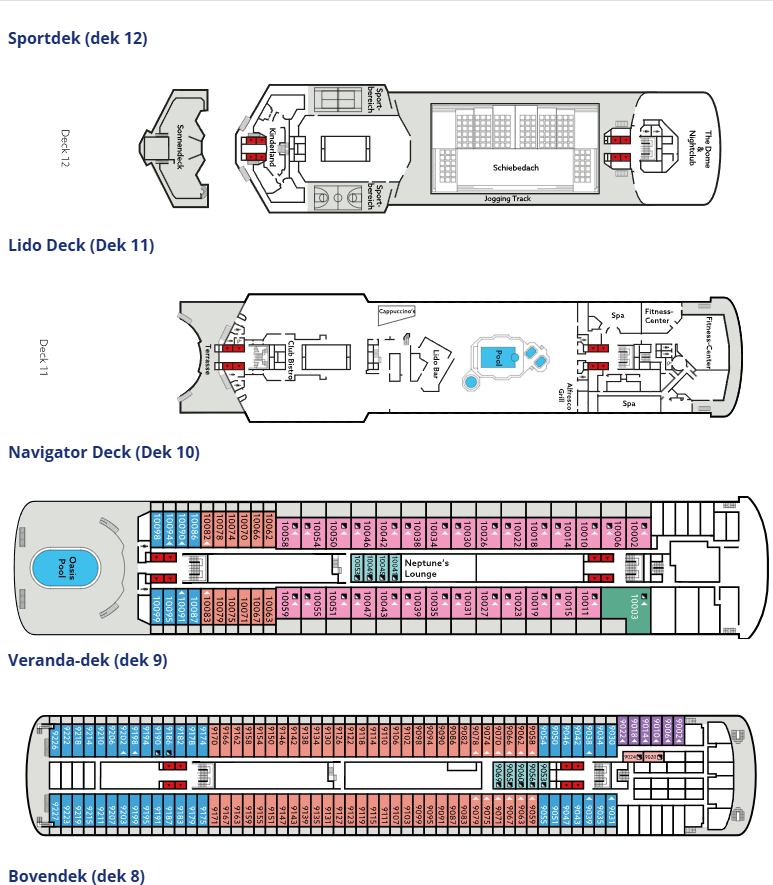 → Handig als je snel toegang wilt tot restaurants, lounges of excursies.