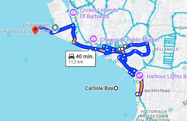 Vanuit de terminal kunt u eenvoudig per taxi, bus of georganiseerde excursie de hoogtepunten van het eiland verkennen. De hoofdstad Bridgetown – UNESCO-werelderfgoed – ligt op slechts 10 tot 15 minuten loopafstand en biedt u een mix van koloniale architectuur, lokale markten en gezellige cafés. Liefhebbers van cultuur, geschiedenis en shopping komen hier volledig aan hun trekken.