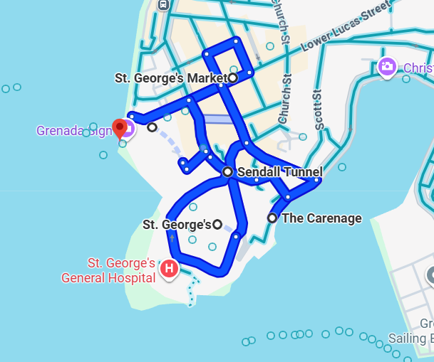 Waterfront (Carenage) – Pittoresk wandelgebied langs oude pakhuizen, vissersboten en kleine winkels.
