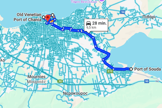 Cruiseschepen meren aan in de moderne haven van Souda. Vanaf daar rijdt u in 10 tot 15 minuten per taxi of shuttlebus naar het centrum van Chania. De route voert langs de kust en biedt al onderweg uitzicht op de zee en de oude stad. Er is goede infrastructuur voor rolstoelgebruikers, en taxi’s zijn betrouwbaar en redelijk geprijsd.