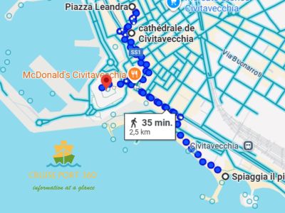 Bereikbaarheid haven → centrum (3 / 5) CruiseMapper, Port of Civitavecchia Haven ligt 80 km van Rome; trein, shuttle of georganiseerde excursie naar de stad nodig.