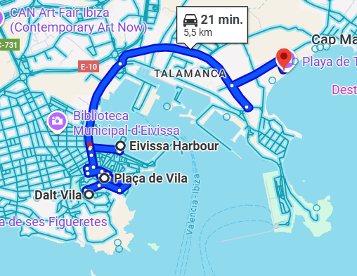 De cruisehaven van Ibiza ligt op ongeveer 2 kilometer van het centrum van Ibiza-stad. U kunt eenvoudig de shuttlebus nemen (ongeveer €3 p.p.) of in 25 minuten wandelen langs de boulevard. Taxi’s zijn direct bij de terminal beschikbaar en kosten gemiddeld €10 – €12 naar het centrum of strand. De route is vlak en goed toegankelijk, met onderweg uitzicht op de jachthaven en de oude stad. Voor wie wil ontspannen, liggen cafés en winkels al binnen 10 minuten lopen van de terminal.