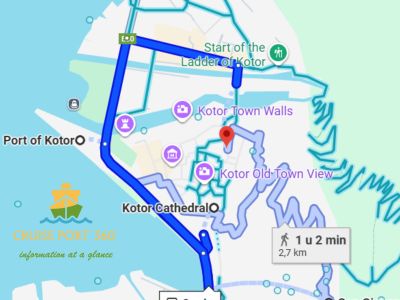 1. Hoe ver ligt de cruisehaven van het centrum van Kotor?