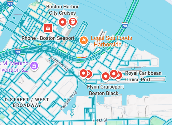 Bij een cruisebezoek aan Boston zijn de vervoersmogelijkheden overzichtelijk en goed georganiseerd. Cruiseschepen meren direct aan bij de cruisehaven; tenderen is niet nodig. Direct bij de terminal staan taxi’s en ride-sharing services klaar om u naar bezienswaardigheden, winkels of wijken te brengen.