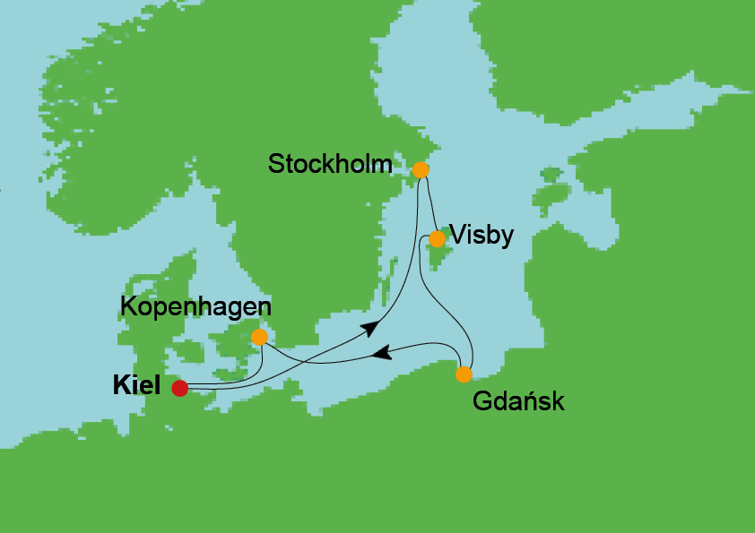 Sommige cruises bezoeken ook Visby, Aarhus of Oslo.