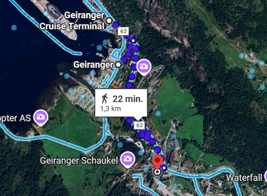 1. Hoe ver ligt de haven van het centrum van Geiranger?