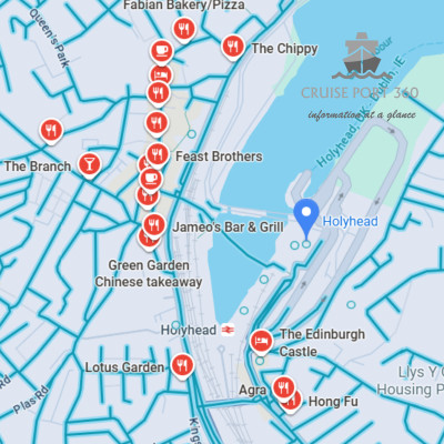 Hoe ver ligt de cruisehaven van Holyhead tot het stadscentrum?