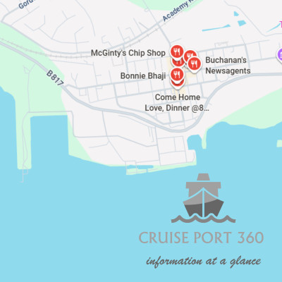 Bij de cruisehaven vind je toiletten, een informatiepunt bemand door vrijwilligers, en een kleine winkel met onder andere souvenirs, whisky en lokale producten. Ook is daar een mobiel scherm met bus- en treintijden.
