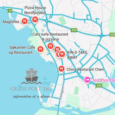 Schepen leggen vaak aan in Olden of Loen. Dorpen zijn klein en overzichtelijk, maar vervoer is nodig voor excursies (bus/taxi).