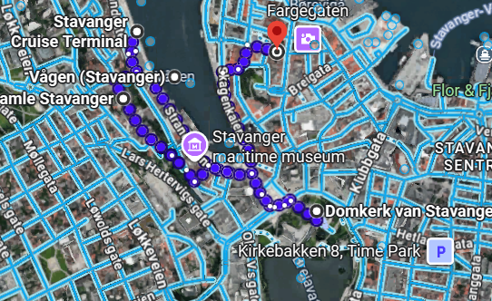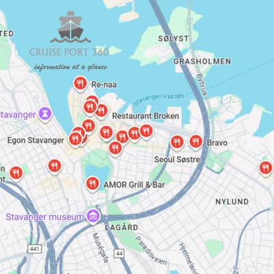 De meeste cruiseschepen leggen aan in het hart van Stavanger, waardoor de belangrijkste bezienswaardigheden zich op slechts 5–15 minuten lopen bevinden