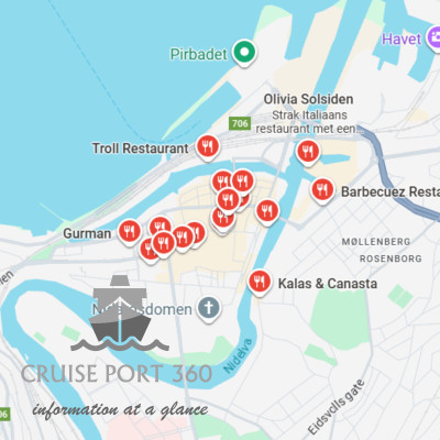 Midden in de stad ligt de beroemde Nidarosdom (Nidarosdomen) — de grootste middeleeuwse kathedraal van Scandinavië en het eindpunt van de eeuwenoude pelgrimsroute St. Olavsleden. De kathedraal is rijk aan gotische details, prachtige glas-in-loodramen en indrukwekkende beelden, en vormt een absolute trekpleister voor bezoekers.